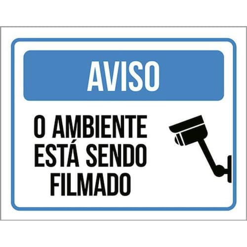 Kit 3 Placas Aviso Ambiente Está Sendo Filmado 36x46 Placas de sinalizaço fabricadas com poliestireno de alto impacto PSAI de 2mm e impressão ultravioleta.