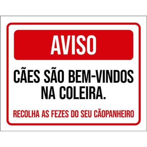 Kit 3 Placas Aviso Cães Bem Vindos Coleira Recolha Fezes Placas de sinalizaço fabricadas com poliestireno de alto impacto PSAI de 2mm e impressão ultravioleta.
