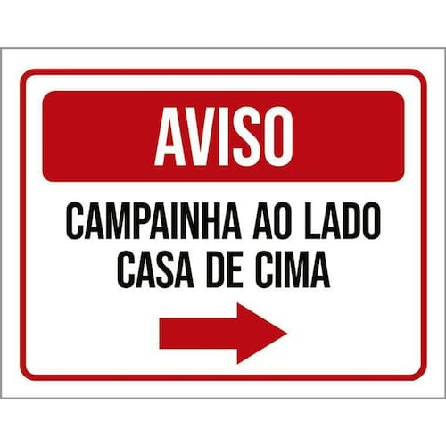 Kit 3 Placas Aviso Campainha Ao Lado Casa De Cima Placas de sinalizaço fabricadas com poliestireno de alto impacto PSAI de 2mm e impressão ultravioleta.