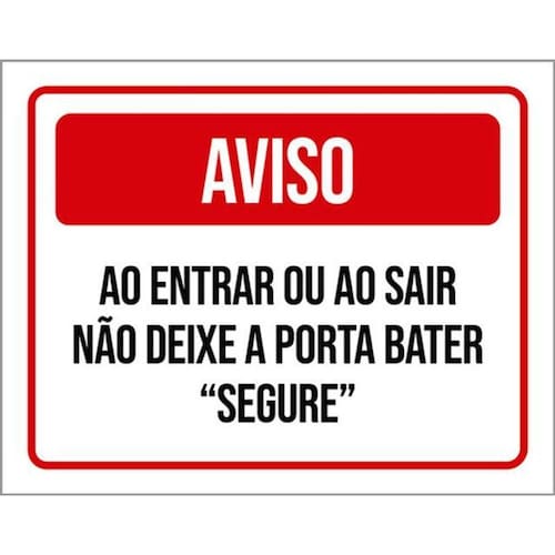 Kit 3 Placas Aviso Entrar Sair Não Deixe Porta Bater Segure Placas de sinalizaço fabricadas com poliestireno de alto impacto PSAI de 2mm e impressão ultravioleta.