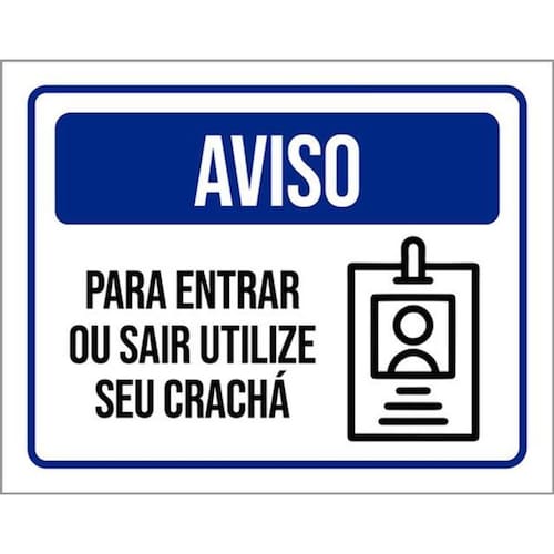 Kit 3 Placas Aviso Entrar Sair Utilize Crachá Placas de sinalizaço fabricadas com poliestireno de alto impacto PSAI de 2mm e impressão ultravioleta.