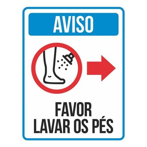 Kit 3 Placas Aviso Favor Lavar Pés Seta Direita 36x46 Placas de sinalizaço fabricadas com poliestireno de alto impacto PSAI de 2mm e impressão ultravioleta.