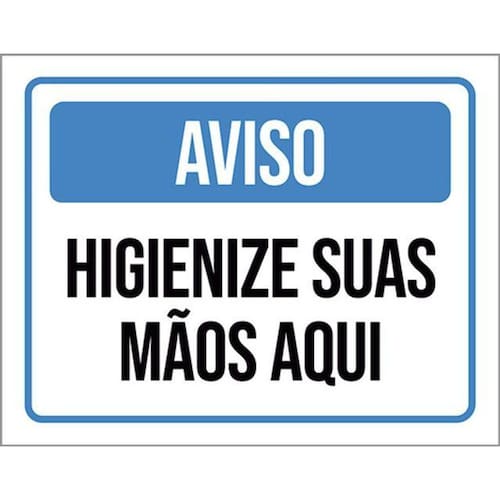 Kit 3 Placas Aviso Higienize Suas Mãos Aqui Azul 36x46 Placas de sinalizaço fabricadas com poliestireno de alto impacto PSAI de 2mm e impressão ultravioleta.