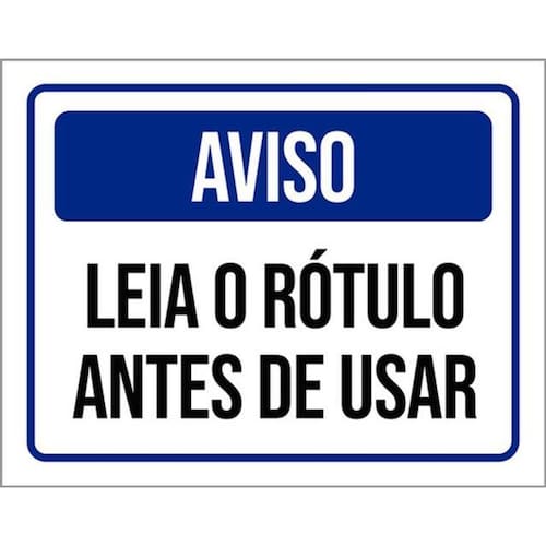 Kit 3 Placas Aviso Leia Rótulo Antes Usar Placas de sinalizaço fabricadas com poliestireno de alto impacto PSAI de 2mm e impressão ultravioleta.