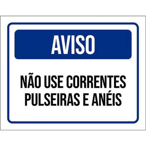 Kit 3 Placas Aviso Não Use Correntes Pulseiras Anéis Placas de sinalizaço fabricadas com poliestireno de alto impacto PSAI de 2mm e impressão ultravioleta.
