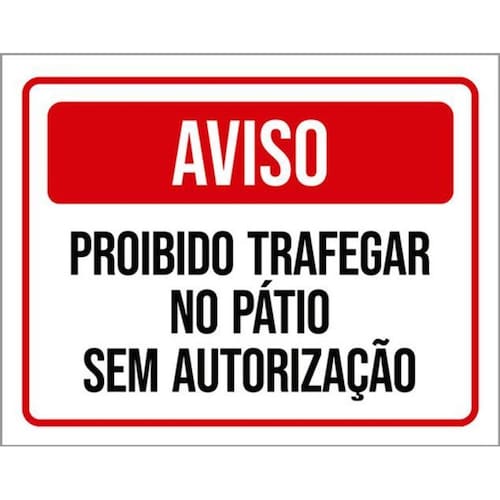 Kit 3 Placas Aviso Proibido Trafegar Pátio Sem Autorização Placas de sinalizaço fabricadas com poliestireno de alto impacto PSAI de 2mm e impressão ultravioleta.
