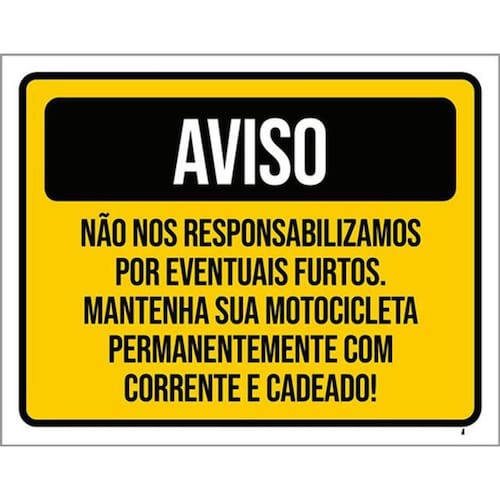 Kit 3 Placas Aviso Responsabilizamos Eventuais Furtos Placas de sinalizaço fabricadas com poliestireno de alto impacto PSAI de 2mm e impressão ultravioleta.