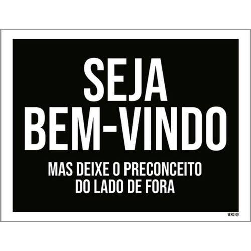 Kit 3 Placas Bem Vindo Preconceito Fora 36x46 Placas de sinalizaço fabricadas com poliestireno de alto impacto PSAI de 2mm e impressão ultravioleta.