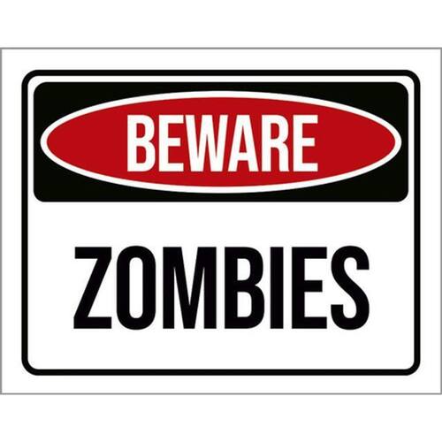 Kit 3 Placas Beware Zombies 36x46 Placas de sinalizaço fabricadas com poliestireno de alto impacto PSAI de 2mm e impressão ultravioleta.