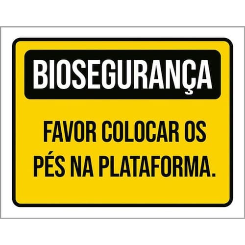Kit 3 Placas Biosegurança Favor Colocar Pés Plataforma Placas de sinalizaço fabricadas com poliestireno de alto impacto PSAI de 2mm e impressão ultravioleta.
