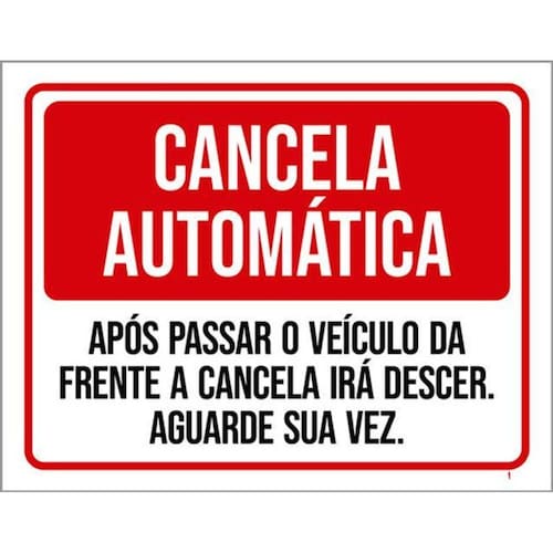 Kit 3 Placas Cancela Automatica Aguarde Sua Vez Placas de sinalizaço fabricadas com poliestireno de alto impacto PSAI de 2mm e impressão ultravioleta.