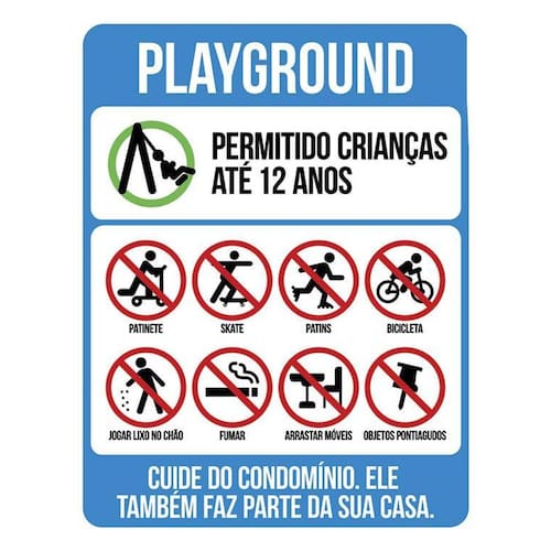 Kit 3 Placas - Condomínio Playground Crianças Placas de sinalizaço fabricadas com poliestireno de alto impacto PSAI de 2mm e impressão ultravioleta.