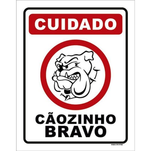 Kit 3 Placas Cuidado Cãozinho Bravo Desenho 36x46 Placas de sinalizaço fabricadas com poliestireno de alto impacto PSAI de 2mm e impressão ultravioleta.
