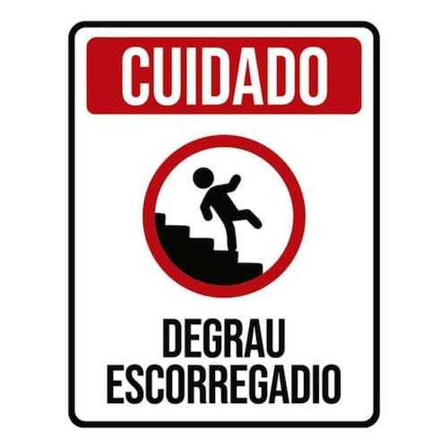 Kit 3 Placas Cuidado Degrau Escorregadio 36x46 Placas de sinalizaço fabricadas com poliestireno de alto impacto PSAI de 2mm e impressão ultravioleta.