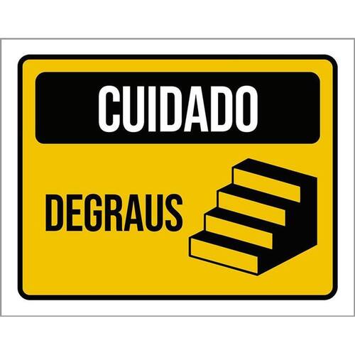 Kit 3 Placas Cuidado Degraus Placas de sinalizaço fabricadas com poliestireno de alto impacto PSAI de 2mm e impressão ultravioleta.