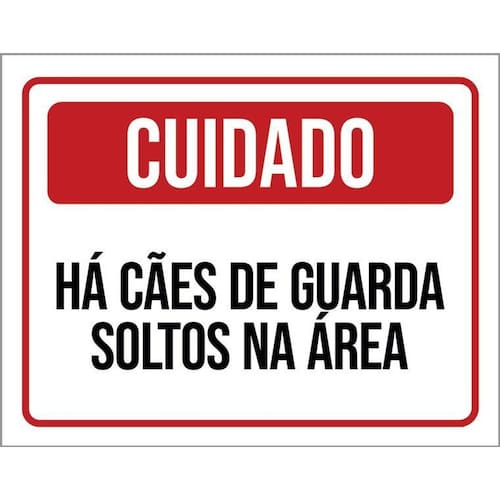 Kit 3 Placas Cuidado Há Cães De Guarda Soltos Na Área Placas de sinalizaço fabricadas com poliestireno de alto impacto PSAI de 2mm e impressão ultravioleta.