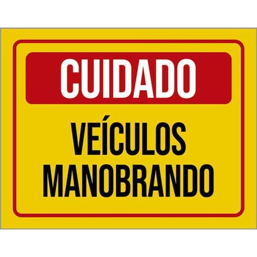 Kit 3 Placas Cuidado Veículos Manobrando Amarela Placas de sinalizaço fabricadas com poliestireno de alto impacto PSAI de 2mm e impressão ultravioleta.