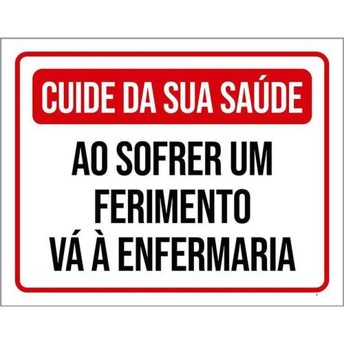 Kit 3 Placas Cuide Saúde Sofrer Ferimento Enfermaria Placas de sinalizaço fabricadas com poliestireno de alto impacto PSAI de 2mm e impressão ultravioleta.