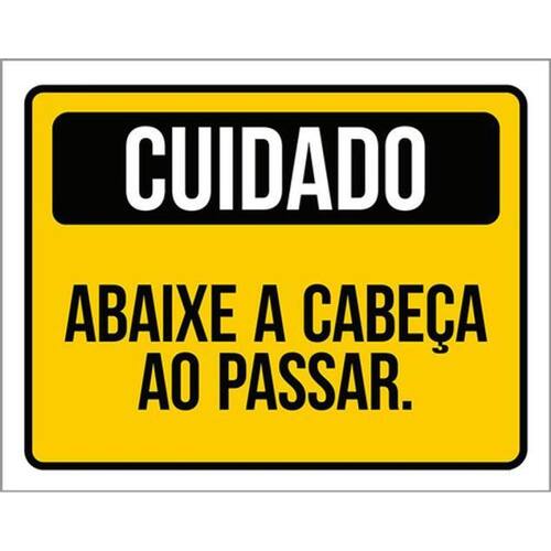 Kit 3 Placas De Cuidado Abaixe Cabeça Ao Passar 36x46 Placas de sinalizaço fabricadas com poliestireno de alto impacto PSAI de 2mm e impressão ultravioleta.