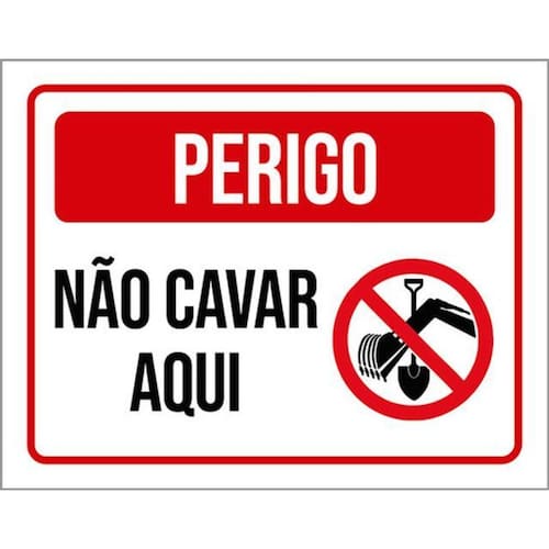 Kit 3 Placas De Perigo Não Cavar Aqui 36x46 Placas de sinalizaço fabricadas com poliestireno de alto impacto PSAI de 2mm e impressão ultravioleta.