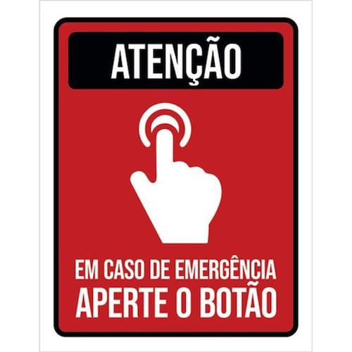 Kit 3 Placas De Sinalização Atenção Emergência Aperte Botão Placas de sinalizaço fabricadas com poliestireno de alto impacto PSAI de 2mm e impressão ultravioleta.