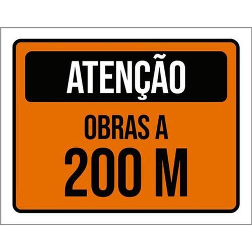 Kit 3 Placas De Sinalização - Atenção Obras A 200 Metros Placas de sinalizaço fabricadas com poliestireno de alto impacto PSAI de 2mm e impressão ultravioleta.