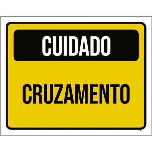 Kit 3 Placas De Sinalização Cuidado Cruzamento Placas de sinalizaço fabricadas com poliestireno de alto impacto PSAI de 2mm e impressão ultravioleta.