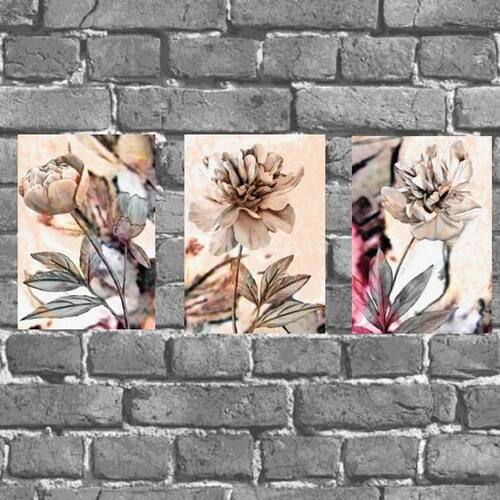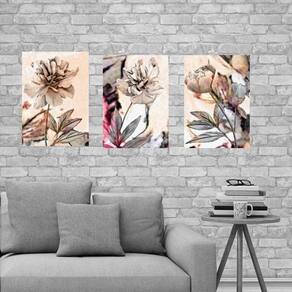 Kit 3 Placas Decorativas Flores Neutras 18x27cm