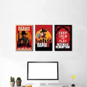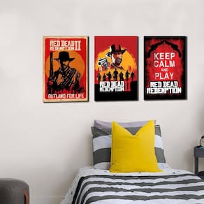 Kit 3 placas decorativas red dead redemption 2 as placas decorativas trazem ao ambiente harmonia e alegria. As placas decorativas da arte quadro é ideal para decorar seu espaço deixando o ambiente mais moderno e agradável e no seu estilo medidas - 3 peças em mdf 3mm adesivado na medida de 30 cm de comprimento e 20 cm de altura. Moldura - os quadros não acompanham moldura. Vidro - os quadros não acompanham vidro. Instalação e limpeza - a instalação é bem simples pode utilizado o método tradicional, pendurado com prego e martelo. Ou se preferir pode ser fixado com buchas e parafusos. - para limpeza, utilize apenas um pano umedecido com água sem produtos químicos para garantir a durabilidade. Seu quadro chegue quebrado - isso é muito difícil de acontecer porém, caso aconteça, basta nos enviar uma mensagem explicando o que houve e nos enviando fotos das que enviaremos outra peça sem nenhuma burocracia ou custo adicional chegou quebrado, enviamos outro, simples assim. Ou se preferir fazemos a devolução de seu dinheiro.