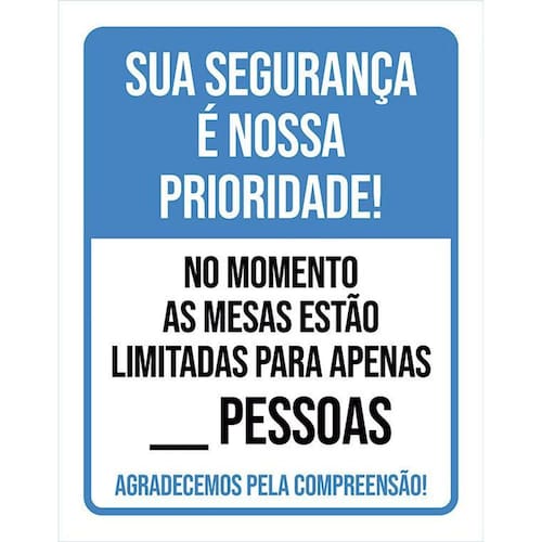 Kit 3 Placas Distanciamento Social Mesas Limitadas Pessoas Placas de sinalizaço fabricadas com poliestireno de alto impacto PSAI de 2mm e impressão ultravioleta.