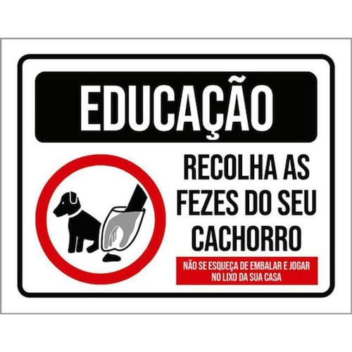 Kit 3 Placas Educação Recolha As Fezes Do Seu Cachorro 36x46 Placas de sinalizaço fabricadas com poliestireno de alto impacto PSAI de 2mm e impressão ultravioleta.