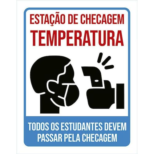 Kit 3 Placas Estação Checagem Temperatura Estudantes Placas de sinalizaço fabricadas com poliestireno de alto impacto PSAI de 2mm e impressão ultravioleta.