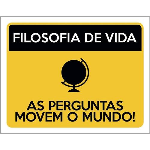 Kit 3 Placas Filosofia De Vida As Perguntas Movem Mundo Placas de sinalizaço fabricadas com poliestireno de alto impacto PSAI de 2mm e impressão ultravioleta.