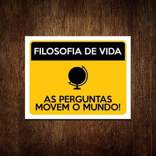 Kit 3 Placas Filosofia De Vida As Perguntas Movem Mundo - Informações do Produto: Kit com 3 placas decorativas iguais fabricadas com poliestireno de alto impacto PSAI de 2mm e adesivo vinil automotivo de alta performance. - Medidas: 18cm x 23cm - Fixação: Todas as placas possuem adesivo dupla face para aplicação em qualquer tipo de superfície lisa. de 12 meses e disponibilidade imediata. Marca: Não Informado