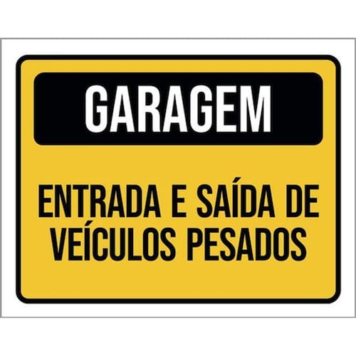 Kit 3 Placas Garagem Entrada Saída Veículos Pesados 36x46 Placas de sinalizaço fabricadas com poliestireno de alto impacto PSAI de 2mm e impressão ultravioleta.