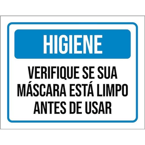 Kit 3 Placas Higiene Verifique Sua Máscara Está Limpa Placas de sinalizaço fabricadas com poliestireno de alto impacto PSAI de 2mm e impressão ultravioleta.