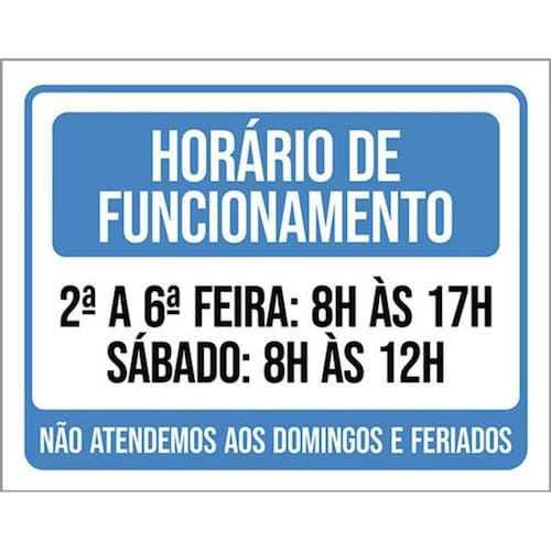Kit 3 Placas Horário Funcionamento Não Atendemos Domingos Placas de sinalizaço fabricadas com poliestireno de alto impacto PSAI de 2mm e impressão ultravioleta.