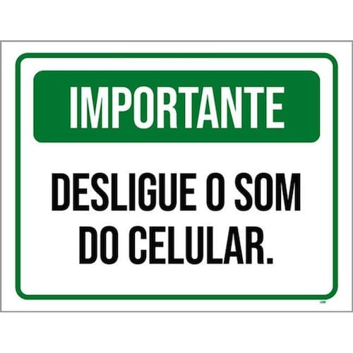 Kit 3 Placas Importante Desligue Som Celular Placas de sinalizaço fabricadas com poliestireno de alto impacto PSAI de 2mm e impressão ultravioleta.