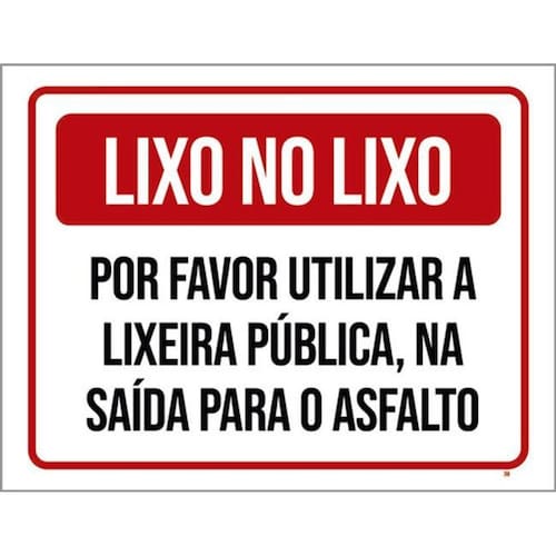 Kit 3 Placas Lixo Favor Utilizar Lixeira Pública Asfalto