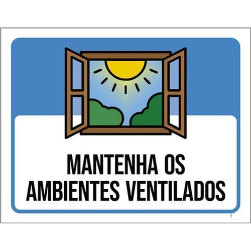 Kit 3 Placas Mantenha Os Ambientes Ventilados 36x46 Placas de sinalizaço fabricadas com poliestireno de alto impacto PSAI de 2mm e impressão ultravioleta.
