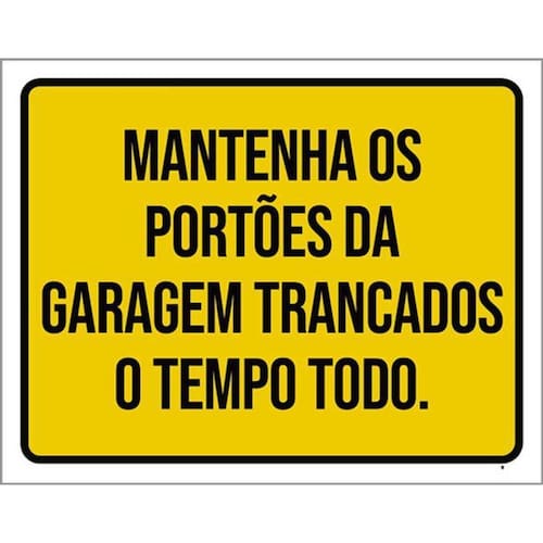 Kit 3 Placas Mantenha Portões Garagem Trancados Tempo 36x46 Placas de sinalizaço fabricadas com poliestireno de alto impacto PSAI de 2mm e impressão ultravioleta.