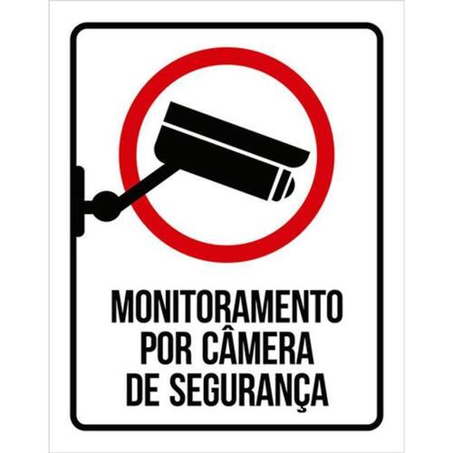 Kit 3 Placas Monitoramento Segurança Câmera 36x46 Placas de sinalizaço fabricadas com poliestireno de alto impacto PSAI de 2mm e impressão ultravioleta.