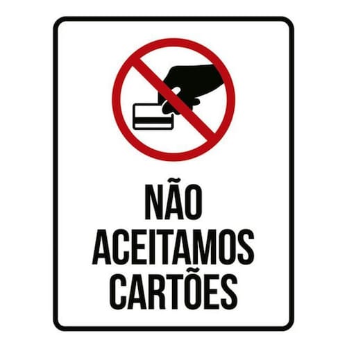 Kit 3 Placas Não Aceitamos Cartões Ícone 36x46 Placas de sinalizaço fabricadas com poliestireno de alto impacto PSAI de 2mm e impressão ultravioleta.