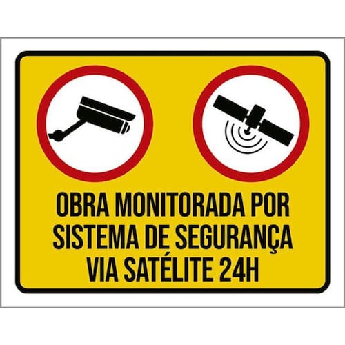 Kit 3 Placas Obra Monitorada Sistema Segurança 36x46 Placas de sinalizaço fabricadas com poliestireno de alto impacto PSAI de 2mm e impressão ultravioleta.