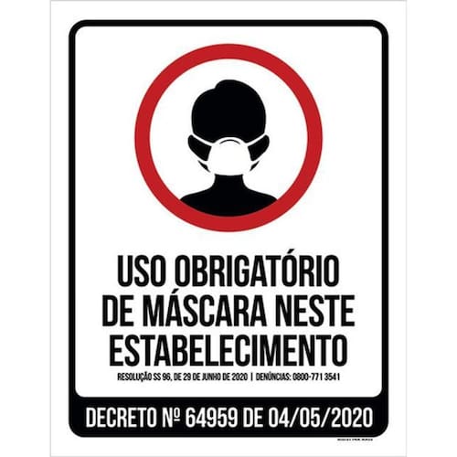 Kit 3 Placas Obrigatório Máscara Estabelecimento Comércio Placas de sinalizaço fabricadas com poliestireno de alto impacto PSAI de 2mm e impressão ultravioleta.