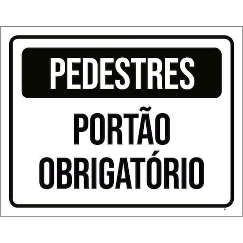 Kit 3 Placas Pedestres Portão Obrigatório Placas de sinalizaço fabricadas com poliestireno de alto impacto PSAI de 2mm e impressão ultravioleta.