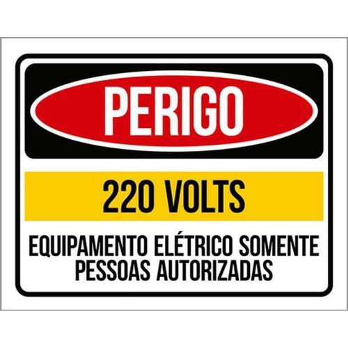 Kit 3 Placas Perigo 220 Volts Somente Pessoas Autorizadas Placas de sinalizaço fabricadas com poliestireno de alto impacto PSAI de 2mm e impressão ultravioleta.