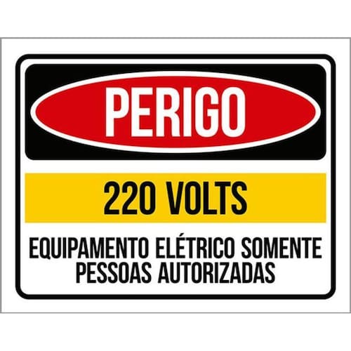 Kit 3 Placas Perigo 220 Volts Somente Pessoas Autorizadas Placas de sinalizaço fabricadas com poliestireno de alto impacto PSAI de 2mm e impressão ultravioleta.