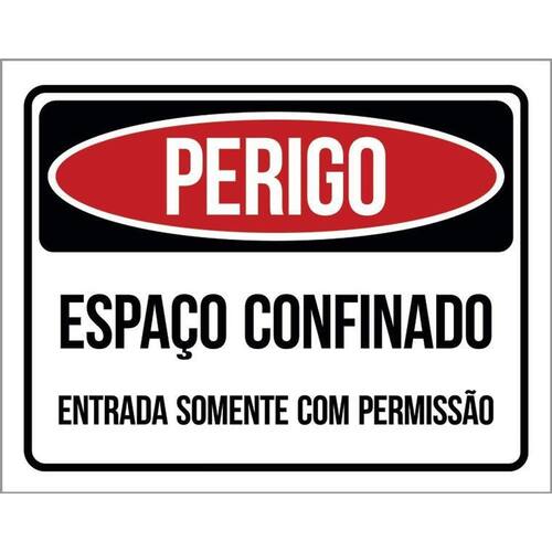 Kit 3 Placas Perigo Espaço Confinado Somente Permissão Placas de sinalizaço fabricadas com poliestireno de alto impacto PSAI de 2mm e impressão ultravioleta.