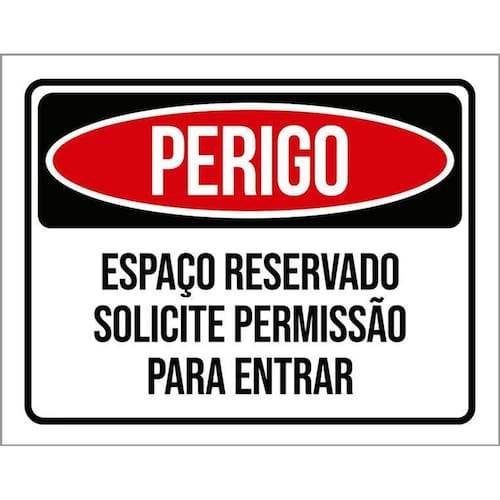 Kit 3 Placas Perigo Espaço Reservado Solicite Permissão Placas de sinalizaço fabricadas com poliestireno de alto impacto PSAI de 2mm e impressão ultravioleta.